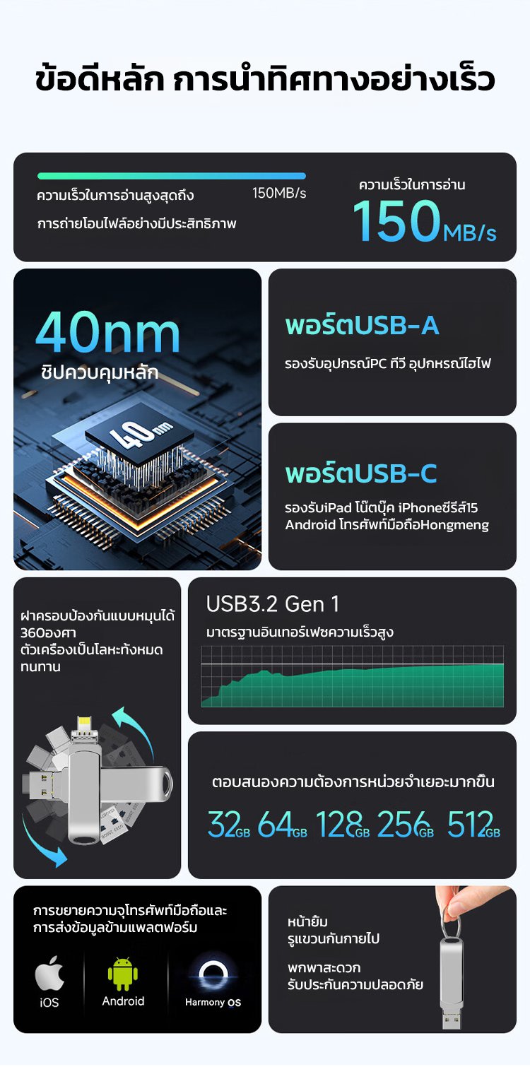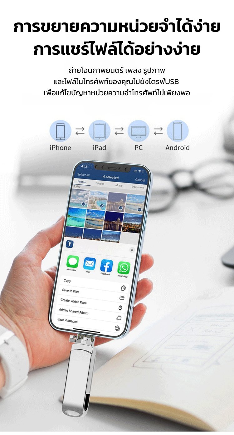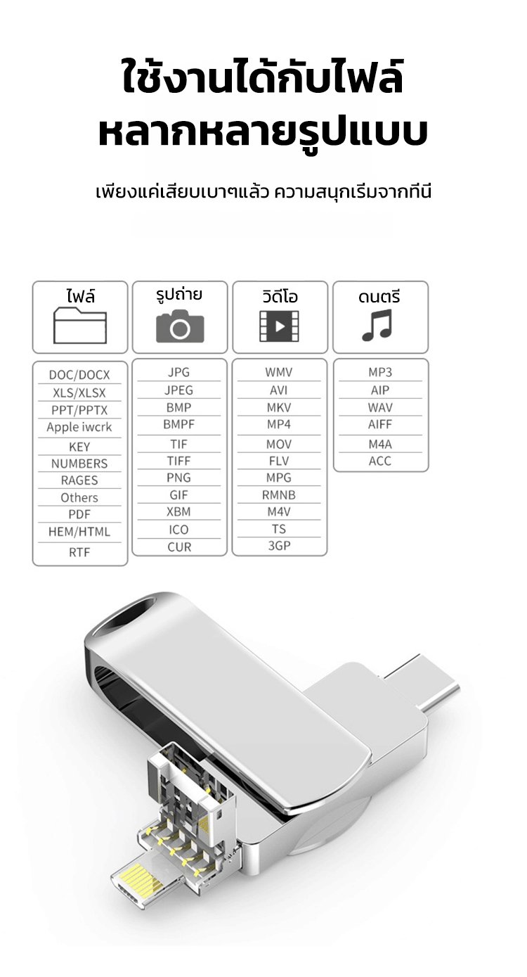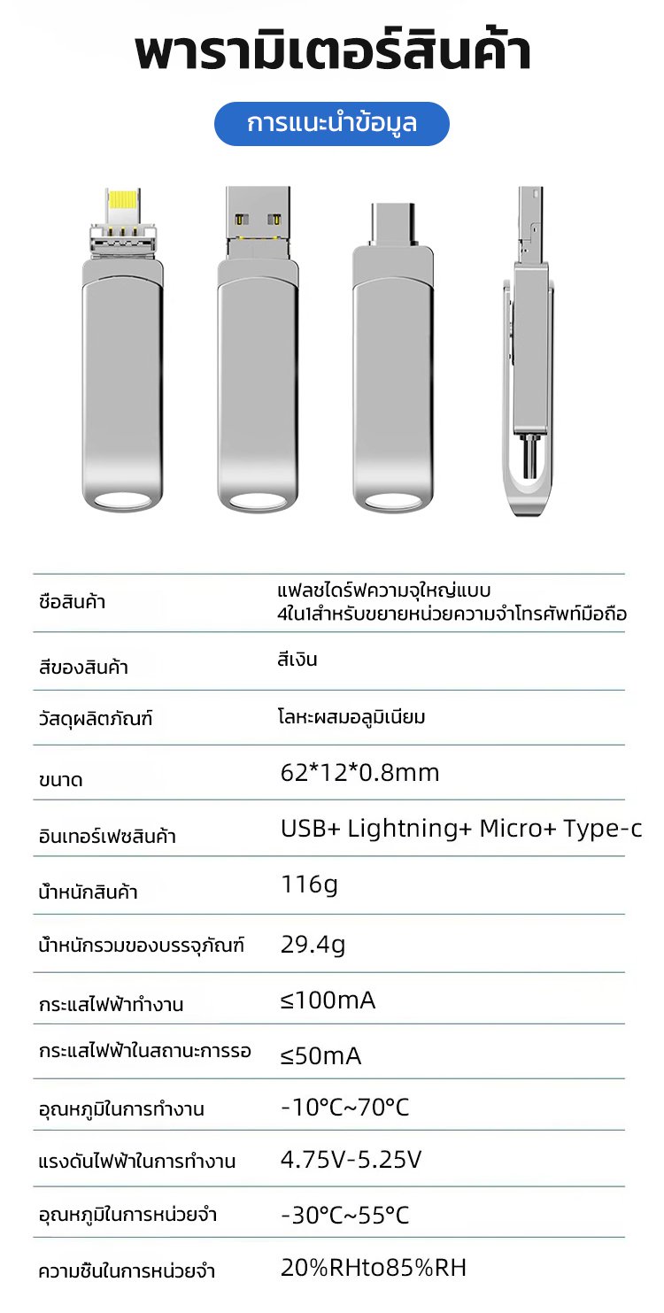 แฟลชไดร์ฟความจุใหญ่แบบ4ใน1สำหรับขยายหน่วยความจำโทรศัพท์มือถือ